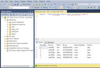 2. Melakukan retriaval data dengan klausa where untuk menampilkan data pelanggan dengan jenis kendaraan motor
